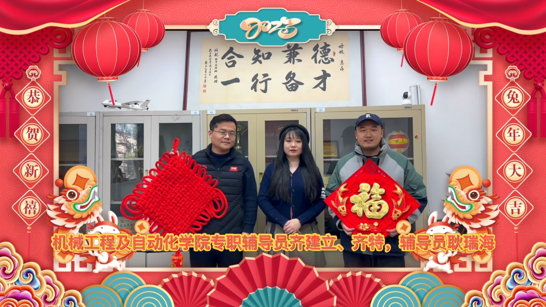 金兔迎春家兴旺,新年顺景人安康,动力学院给各位师生拜年了!恭祝大家在新的一年里: 身体健康,工作顺利,生活美满,万事胜意!压气机做功拉进彼此距离,燃烧室助力事业红红火火,涡轮的能量带给我们澎湃动力!同进取,共奋进,团结奋斗再出发,王牌动力保驾护航!