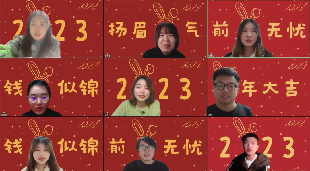玉兔跳,新年到!值此佳节,祝亲爱的同学们新的一年:福气“交”至,鸿运亨“通”;学富五“车”,喜乐“辆”全;“土”故纳新,家庭和“木”;健康舒“适”,扬帆远“航”!愿大家兔年好运挡不住,新春快乐阖家欢!