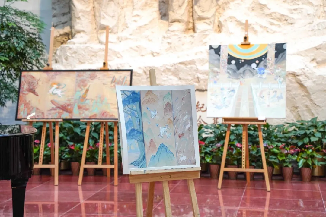 近日,新媒体学院23级的同学们,结合自身匠心独运的创意,让古老的传统文化在现代科技的助力下焕发出新的生命力——在“民间绘画与创意”课程中,深入探讨了中国传统民间绘画的精髓,运用生成式人工智能技术(AIGC)进行辅助,探索将敦煌元素与航空航天科技元素相结合的全新创作方式,为绘画作品注入数字化的灵魂。
