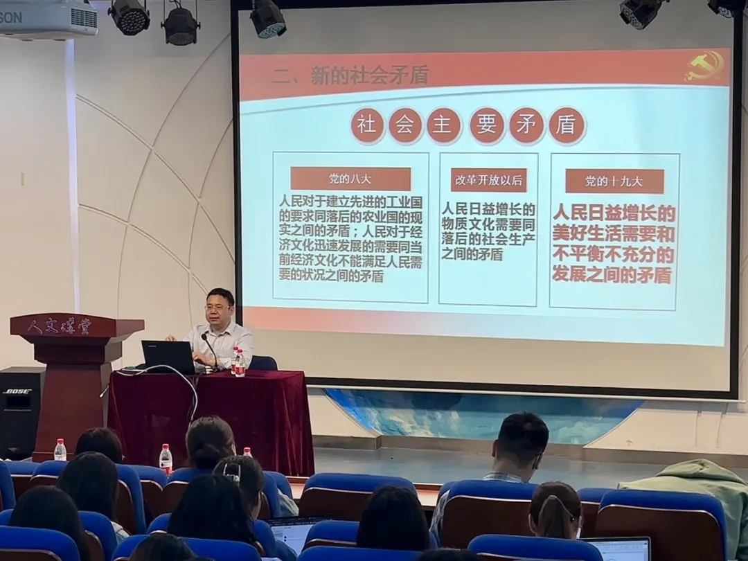 4月17日,人文学院第二次集中党课理论学习讲座在人文讲堂举行。本次讲座邀请到中共北京市委党校北京党建研究基地研究员张玉宝老师为党员和积极分子讲授《习近平新时代中国特色社会主义思想的核心要义与丰富内涵》专题党课。通过此次理论学习,同志们更加深入学习了党的理论知识,增强了党性修养,提升了政治觉悟,在新的赶考之路上书写出不负时代、不负人民的优异答卷。