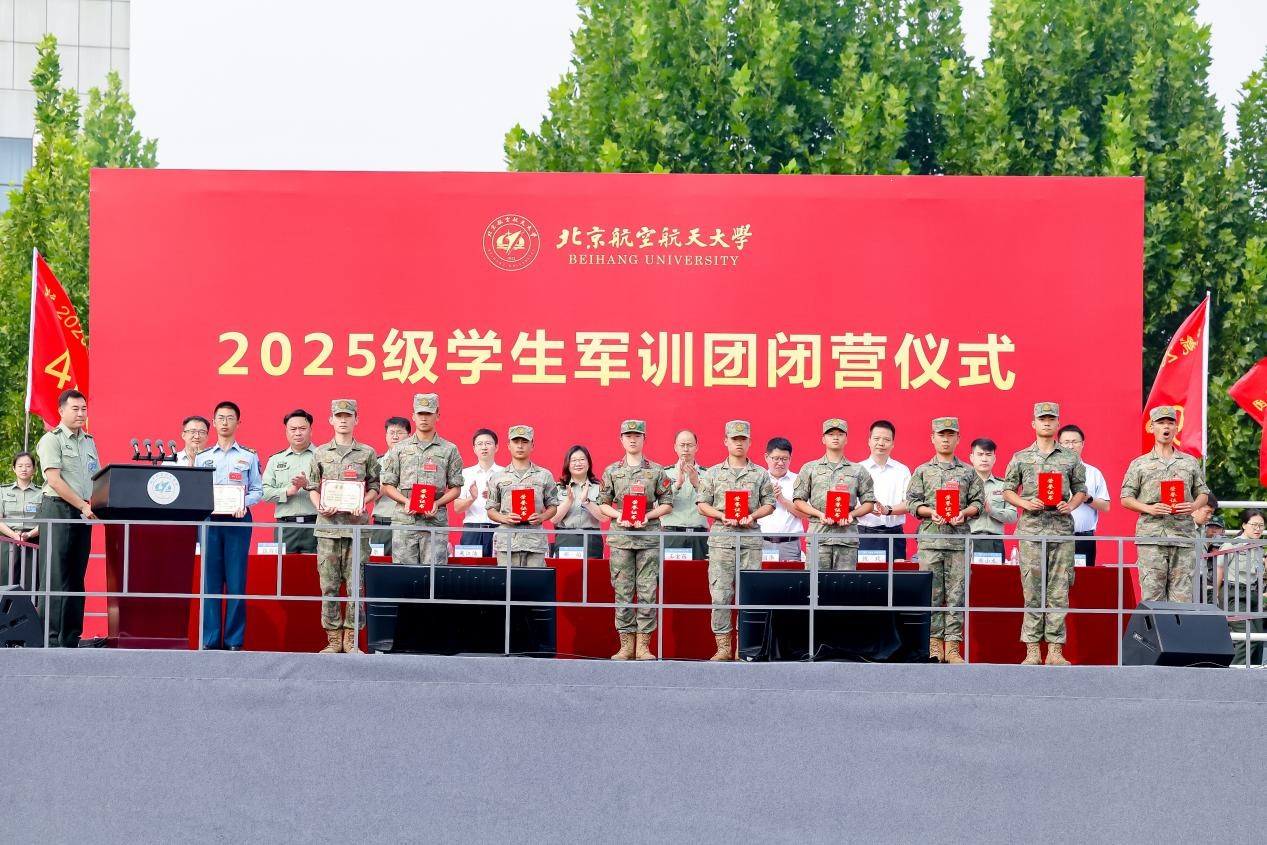 北航新闻网9月14日电(通讯员 邹雨初 邓修齐 王维扬 姜骁宵 摄影 陈想 郄家润 赵浩辰)9月13日上午,北航2025级学生军训团闭营仪式在沙河校区体育场和杭州国际校园体育场同步举行。北京市委教育工委宣教处三级调研员赵国伟,承训单位领导王金苗、张智强、黄小龙,我校副校长邓怡、吴江浩,学生工作部、教务部、校团委等单位负责人及各学院(书院)领导出席闭营仪式。军训团政委张驰主持闭营仪式。
