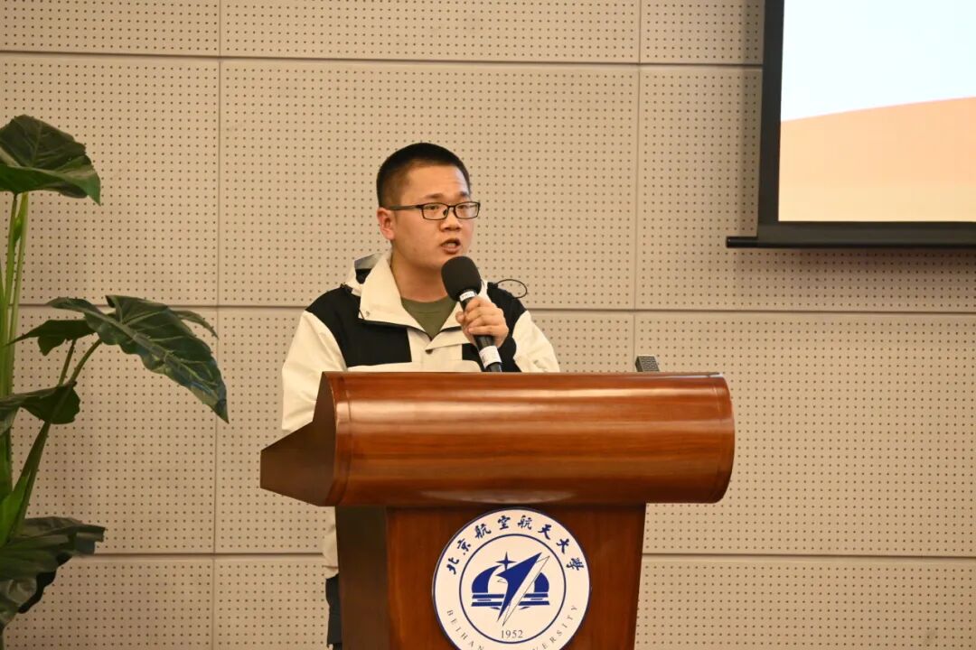 第十五届队员邓金鑫作为往届队员代表在入队仪式上致辞,分享了自己在北航国护的经验和感悟。六年队内生活,十二春秋交替,一朝护旗手,终身国护人。他鼓励新队员保持初心,追求创新,并与兄弟高校保持交流合作,祝愿北航国护越来越好。