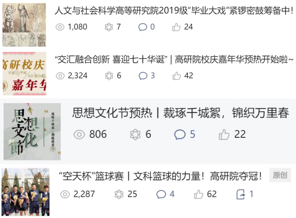④喜报《“空天杯”篮球赛丨文科篮球的力量!高研院夺冠!》记录高研学子携书生意气,夺赛场桂冠,展现高研人的精神风貌。