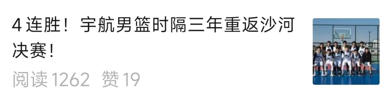 《4连胜!宇航男篮时隔三年重返沙河决赛!》时隔三年,宇航男篮披荆斩棘,重返沙河决赛