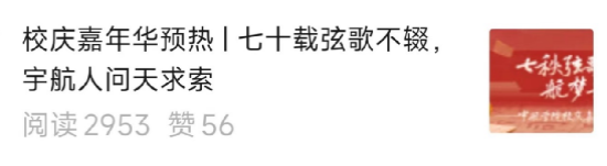 《校庆嘉年华预热 | 七十载弦歌不辍,宇航人问天求索》七十载空天报国,新时代逐梦一流,来和宇航学院一起,为即将迎来的七十周年校庆献上祝福