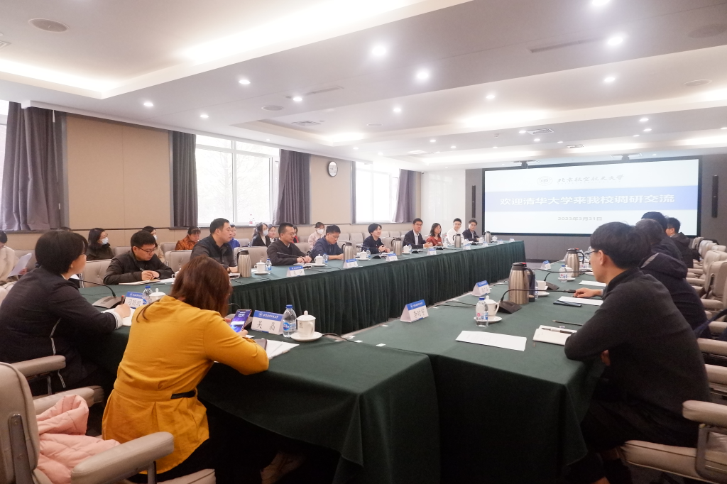 党委学生工作部、武装部部长宋晓东对清华一行的到来表示诚挚欢迎,并详细介绍了北航学生党建与思政工作的总体情况。他谈到,北航瞄准新时代人才培养要求,秉持系统观念,持续完善“大思政”工作机制,大力推动本研学生工作一体化建设,做好学生思想引领、心理健康、就业管理、发展支持等工作的顶层谋划。本年度,聚焦学生理想信念教育,重点实施理论学习“领航工程”、价值塑造“启航工程”,榜样示范“引航工程”和社会实践“远航工程”,通过系列举措持续强化学生思想引领。