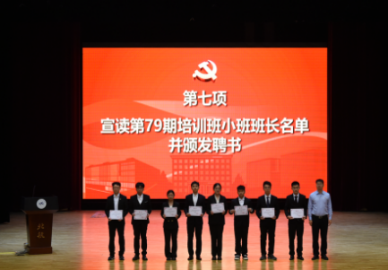 在开班式上,宋晓东宣读了第79期培训班小班班长名单并颁发聘书。傅艳晓宣读了第78期培训班优秀学员、优秀班长和优秀理论导师名单并颁发证书。沙河校区同步进行了颁发。