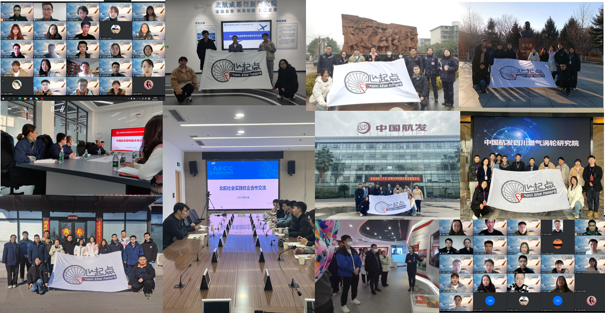寒假期间,心起点同航空工业成都飞机工业(集团)有限公司,中国航发四川燃气涡轮研究院,中国航发成都发动机(集团)有限公司,中国航发沈阳发动机研究所,中国航发沈阳黎明航空发动机有限公司,北航(四川)西部国际创新港科技有限公司,中国航发贵州黎阳航空动力有限公司,中国航发南方工业有限公司等8家航空航天企业开展实践调研。