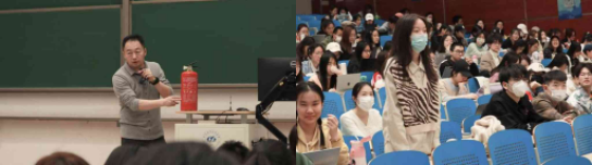 安全保卫部董褀瑞老师从学习消防安全知识的目的、消防基本安全知识、扑救火灾的一般方法及一般原则等方面展开讲述。为进一步增强同学们消防意识,董褀瑞通过现场实践操作展示消防设备器材的使用方法,传授火灾来临时的常用的逃生方法和原则,强调同学们要学会判别火场情况,树立起正确的逃生观念,掌握正确的火灾逃生方法。