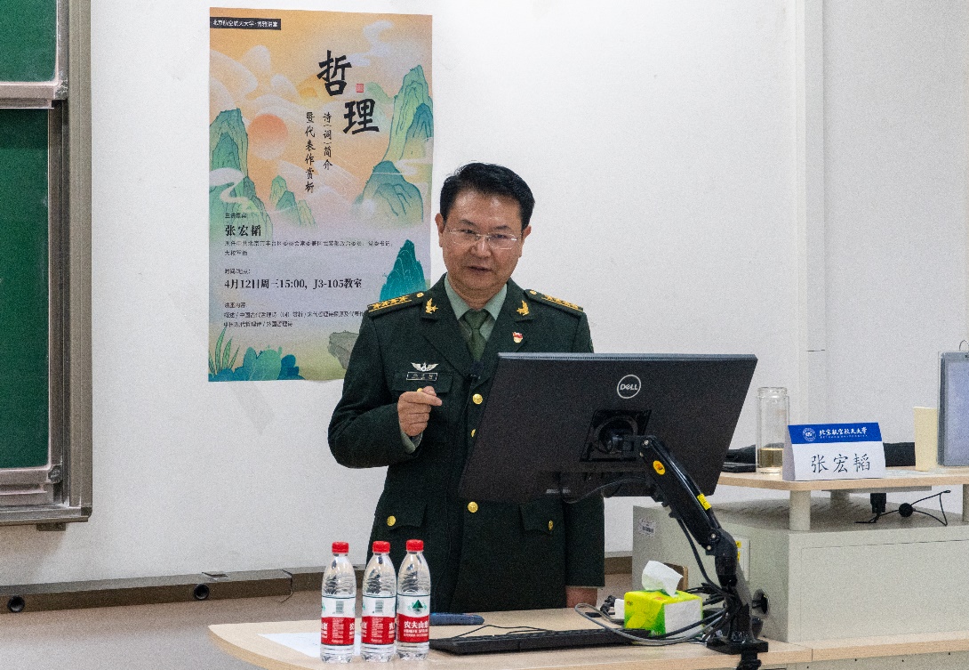 为弘扬中华传统文化,坚定文化自信,4月12日,空间与环境学院邀请北京市丰台区委常委兼武装部政委张宏韬大校为同学们带来了“中国哲理诗词简介暨代表作赏析”博雅讲座。