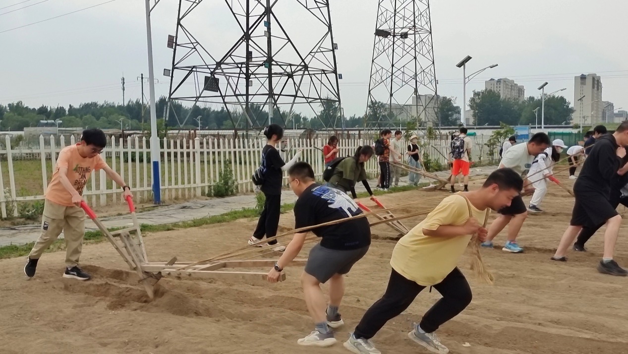活动开始前,工作人员将同学们进行了分组,并详细地介绍了耕地、播种的步骤和技巧。听完工作人员的讲解,同学们便迅速融入了基地的工作氛围,小组的几位同学,有人在前面拉犁,有人在后面调整方向,刚开始时大家对于木犁的使用方法还有些生疏,但随着工作人员的指导更正和同学们一遍遍的练习,大家愈发娴熟。原本平坦的土地上被犁出一道道沟壑,大家又投身于播种的任务中,认真地学习种植技巧,有的人负责撒种,有的人负责盖土。整个过程中,工作人员与同学们互动频繁,向同学们传授了农民的智慧和经验,让大家更好地理解和尊重农民的辛勤付出。每个人都深刻体会到农活的艰辛与劳累,同时也感受到农民对大地的深情和感激。