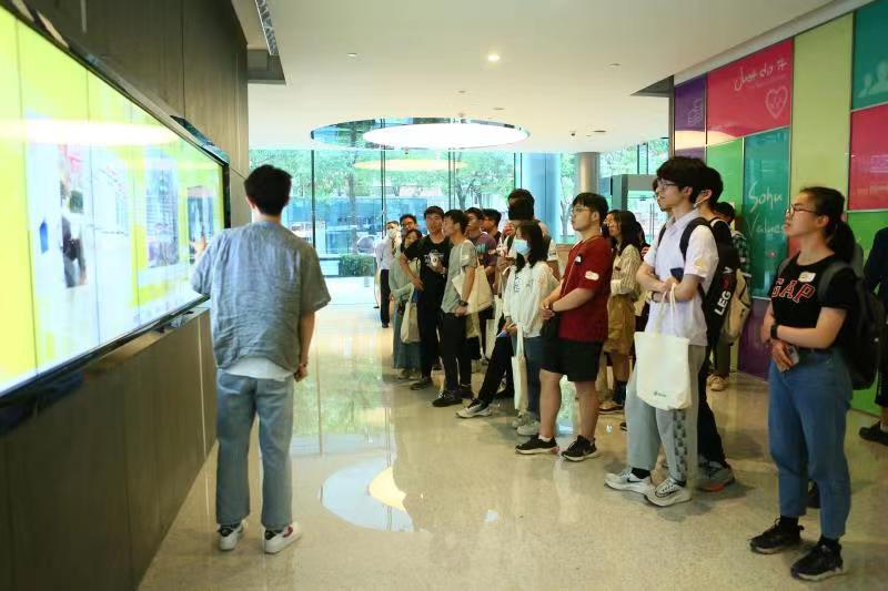 参观环节,师生们共同参观了搜狐媒体大厦的工作区、活动区、研讨区、荣誉墙等,直观深入地感受了搜狐集团的企业文化。