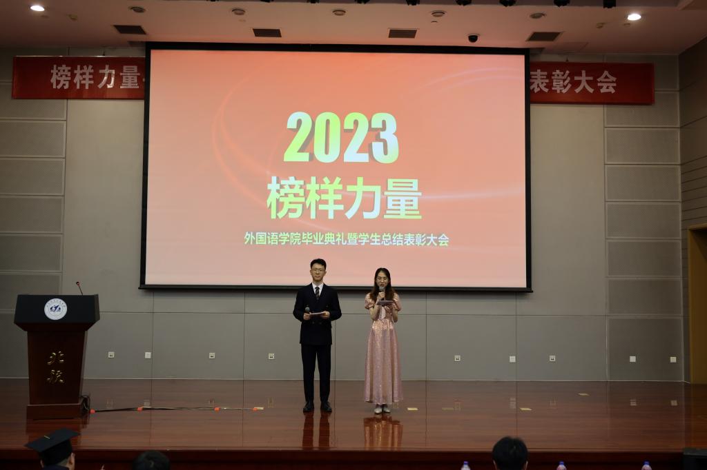 正值2023届本硕博毕业生即将离校之际,外国语学院举行“2023榜样力量”学生总结表彰大会,欢送117名本研毕业生,同时也为学院各年级学生树立榜样,彰显榜样力量。外国语学院领导、导师和任课教师代表、全体毕业生以及各年级学生出席本次活动。