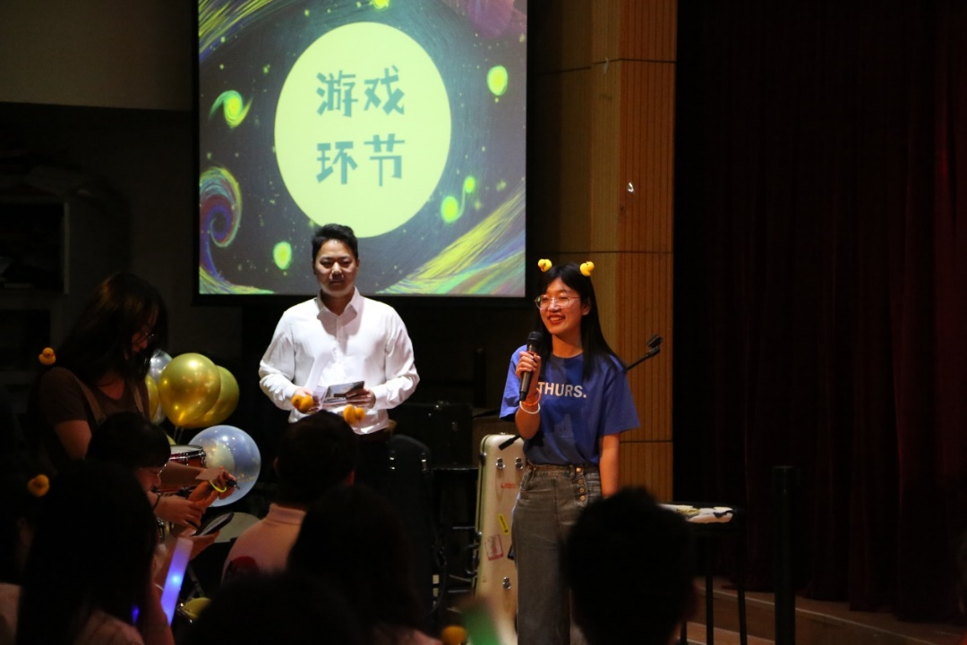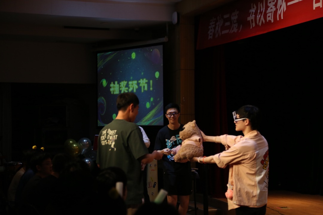 穿插在节目中间的现场游戏《抢凳子》、《乒乓球传递》以及游戏后的抽奖环节,更是让同学们的欢声笑语环绕在整个晨兴剧场中。现场由参加晚会的同学抽取三等奖5项、二等奖3项、一等奖2项。参与游戏的同学都获得了筹备组精心挑选的小礼品。