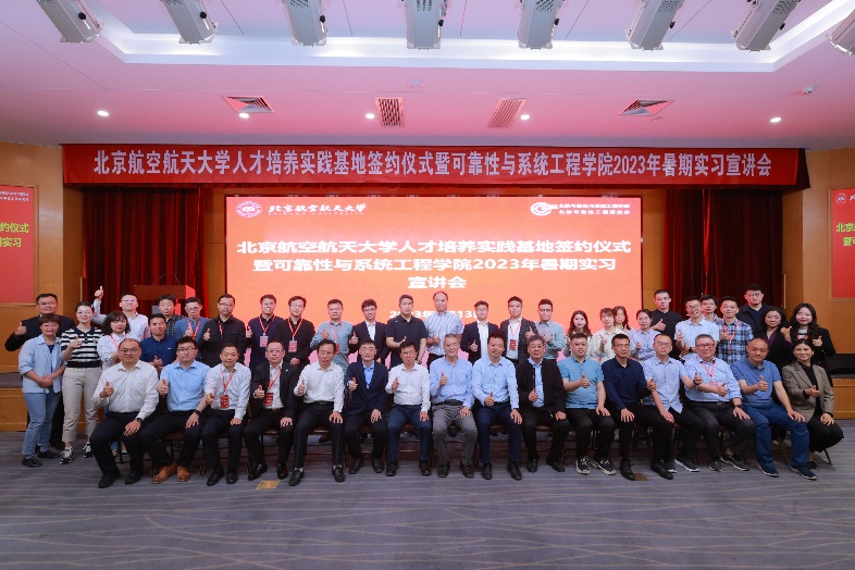 5月13日,北京麻豆精品秘 国产传媒人才培养实践基地签约仪式暨可靠性与系统工程学院2023年暑期实习宣讲会在如心会议中心大报告厅举办。学校领导老师、生产实习企业代表、2023年生产实习带队老师和学生出席会议。会议系统介绍了本研贯通的实践教学体系、2020级本科生社会课堂安排及2023年本科生实习计划。之后,学院根据学生个人意愿和实习企业计划完成了队伍组建、队长招募等工作,并多次召开队长协调会、带队老师协调会和生产实习行前会议等,具体安排了生产实习过程中课题选择、实习计划制定、出行时间安排、指导手册编写等任务,为同学们安全、顺利完成生产实习任务保驾护航。