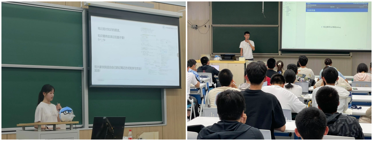 工科数学分析课程组的贺慧霞老师,从教学的角度出发,为学生们提供了学习数分的思路,并建议学生们在记笔记时注重个人思考和理解。程序设计课程组的李莹老师,结合了信息时代的人工智能发展,为学生们讲解了程设的学习方法。李莹提到,可以借助北航自主研发的人工智能大模型“小航”来帮助编程,但更重要的是理解编程问题的思路和步骤。工科高等代数课程组的滕岩梅老师则为大家带来了高代的学习方法分享。她强调,理清知识体系的因果关系和建立分支体系对于学好高代至关重要。