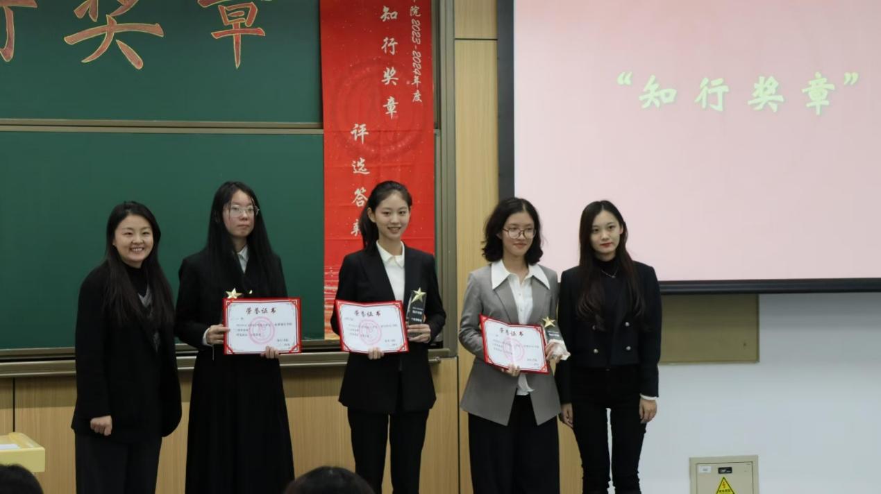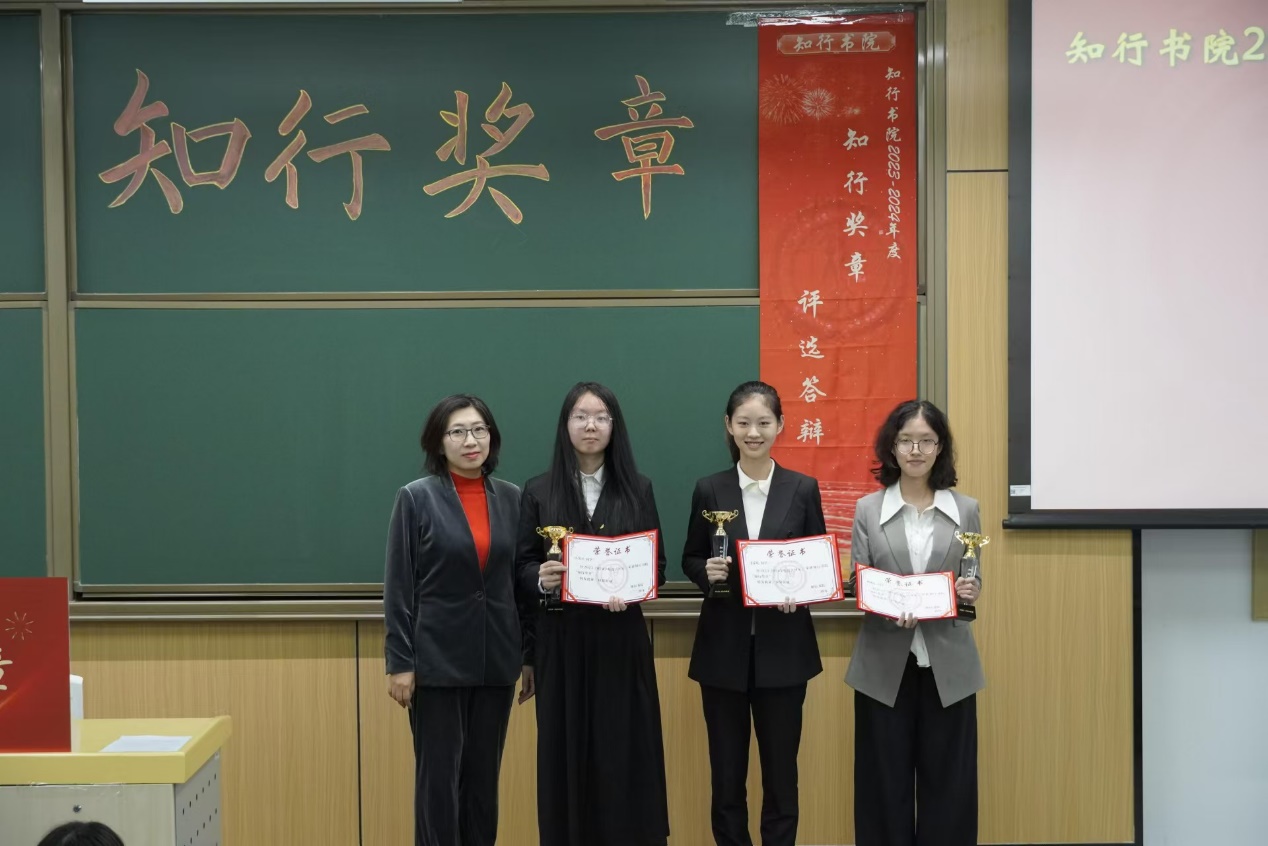最终,陈思睿、冯雪纯、张馨瑶获得知行书院最高荣誉“知行奖章”。晁诗怡、詹亦乔、胡晋荣、宫伟佳、李雨桐获得“知行之星”(“知行奖章”提名奖)。237911班、237917班和237921班获得“知行奖章”集体奖。