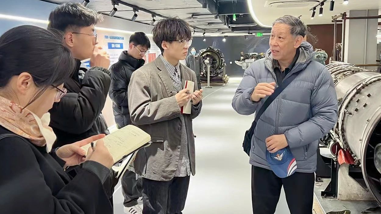 陈志英教授创新性提出三维架构科普理念:严谨的工程思维为骨架;匠心的展示艺术为肌理;生动的讲述方式赋灵魂。陈志英以走马灯、孔明灯等古代与航空相关的发明为起点,进而延伸至飞机、直升机等现代飞行器,巧妙地串联起人类飞行探索的辉煌历程。他独具匠心地融入哪吒“风火轮”的神话故事,将古代智慧、近现代创新与现代科技相映成趣,生动诠释了飞行梦想从萌芽到腾飞的跨越时空之旅。他还紧密结合馆内涡喷、涡扇发动机等珍贵实物,从工程实际应用的角度出发,深入阐释了不同发动机的工作原理。在讲解中,他着重介绍了由高歌教授发明的“沙丘驻涡火焰稳定器”。这项发明被钱学森同志称之为“一项长中国人志气的重要发明”,展现了北航人勇于探索、不断创新的精神风貌。