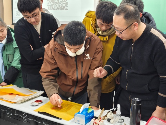 在博雅课堂上,邵帅详细解读了纱阁戏人的历史渊源、技艺特色及其深厚的文化内涵,围绕“非遗活化的守护与创新”这一主题与在场同学问答互动,探讨纱阁戏人的创新发展路径。随后,邵悦文现场展示了“竹石吉祥”书画作品的创作过程,并指导同学们亲手体验拓印技艺。其中,为本次活动特别制作的哪吒主题印版深受喜爱,大家踊跃参与拓印,现场气氛活跃。最后,晋善晋美实践队队长李奕瑾作总结发言,呼吁同学们关注传统文化,积极参与非遗保护与传承,为中华优秀传统文化的创新发展贡献自己的力量。